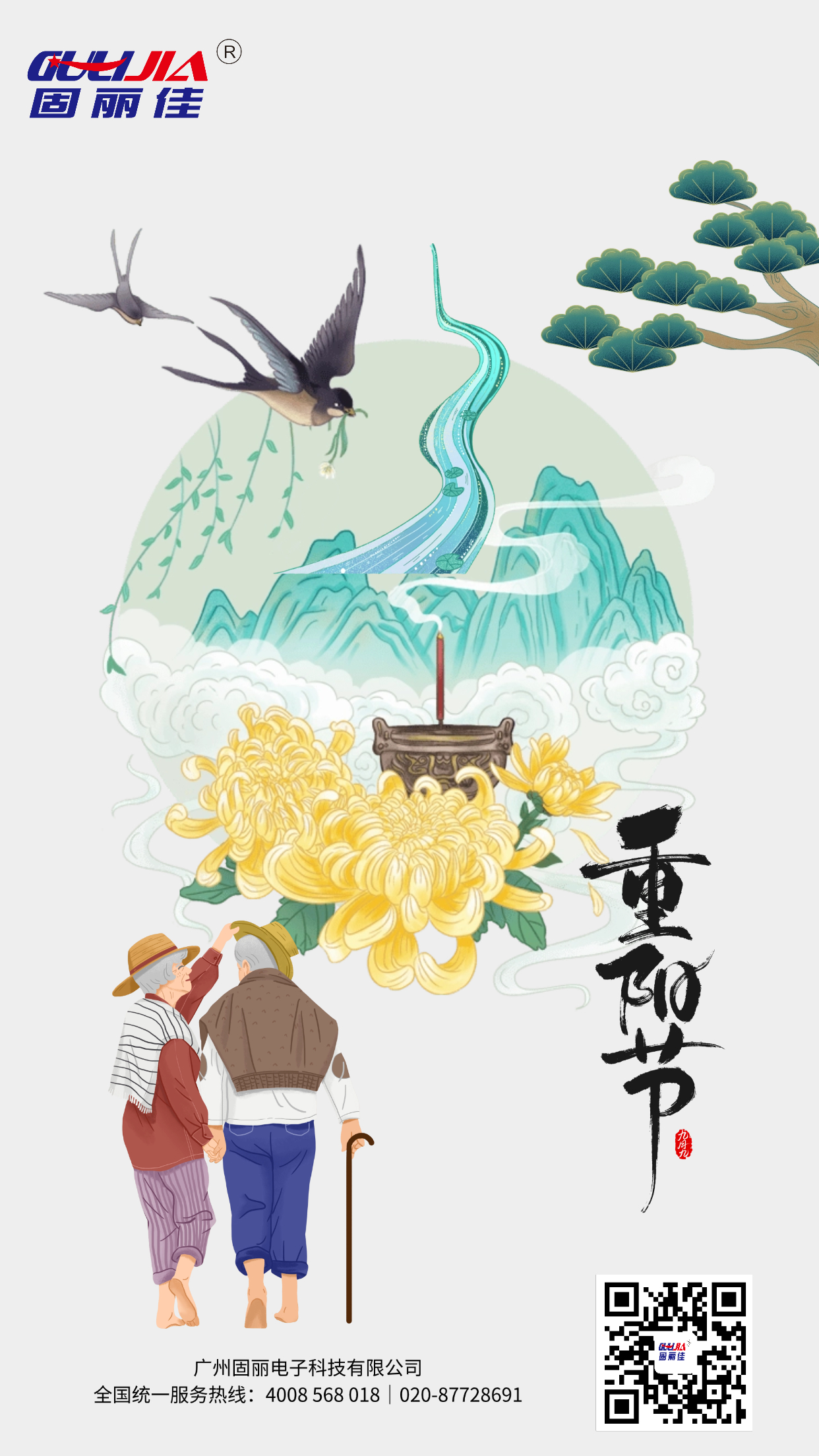 重陽節(jié),又稱重九節(jié)、茱萸節(jié)、登高節(jié)、敬老節(jié),時(shí)間在每年的農(nóng)歷九月初九,是中國(guó)慶祝豐收、祈福長(zhǎng)壽、孝老思親的節(jié)日。《易經(jīng)》中將“九”定為陽數(shù),九月九日,日月并陽,故稱“重陽”。固麗佳全體同仁祝大家身體健康,開心長(zhǎng)壽,歲歲安康!