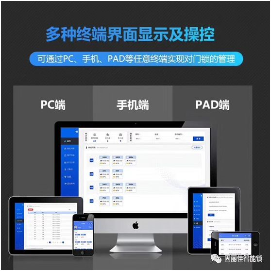 這樣一家高端智能公寓不僅僅在要服務上有特色,更有有專業(yè)化、規(guī)范化、個性化、智能化的管理。固麗佳LORA無線聯網鎖可支持手機、PCPAD多端界面同步顯示及操控,而且功耗低、穩(wěn)定性強、無線通訊距離遠。門鎖可同時生效80組在線密碼、離線密碼、在線卡片及加密卡片,同時支持微信二維碼掃碼開鎖,多功能智能網關,搭配聯網電表、水表使用,門鎖狀態(tài)實時在線,網絡信號、電池電量、異常報警實時顯示,海量房源實時管理。給房東帶來了巨大的便利,房東無需到現場進行管理,無需當面交易,可在線實現催繳房租,報修維護等操作,可實現多房源集中管理。